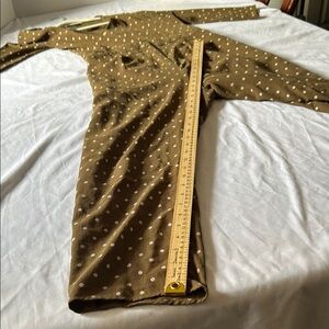 Chic brown jumpsuit featuring white dot pattern. Perfect for versatile styling.