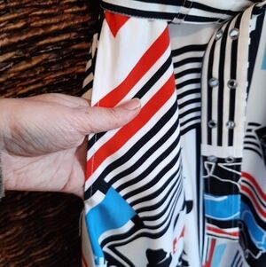 Karl Lagerfeld Paris Eiffel Tower Belted Midi Dress 8 Mod Retro Military Stripes Logo