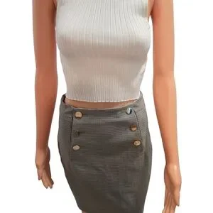 Discover the elegance of the H&M gray pencil skirt, designed to seamlessly transition from the office to a cocktail event. This knee-length skirt offers a sleek and tailored fit, ensuring a flattering silhouette for any professional setting. Crafted with attention to detail, it embodies both style and sophistication, making it a versatile addition to your wardrobe.