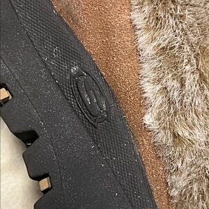 Pre-owned WARM & COMFY vintage tan-brown leather faux fur lined slip resistant chunky sole clogs. Size Women’s 10.