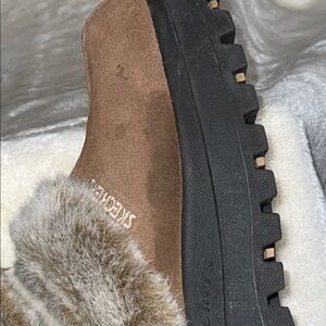 SKETCHERS WORK 🥾 TAN/BROWN LEATHER FAUX FUR LINED NON-SLIP SOLE CLOGS Women’s 10