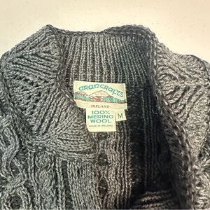 Aran Crafts Women's Gray Cable-Knit Button Cardigan Sweater 100% Merino Wool M