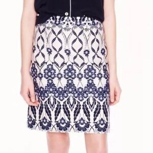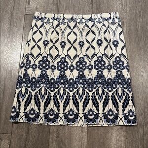 J. Crew Trellis Skirt Blue & White Floral Scroll Mini A-Line Skirt Size 10