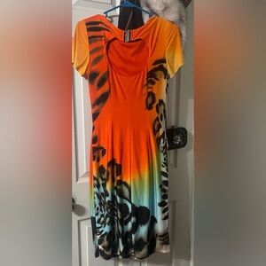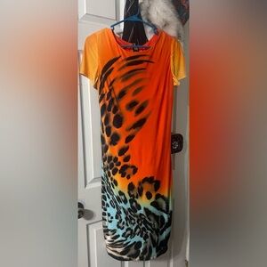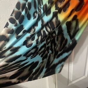 Eye-catching dress by Frank Lyman Design. Animal print with gorgeous vibrant colors, this dress looks great on anyone, figure flattering and all around beautifully made dress. No snags or stains, great condition! Size 6