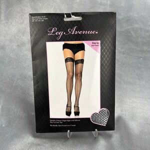 Leg Avenue One Size Black Fishnets Style 9122Q Halloween Costume Silicone Lace Top Stay Up Stockings Sexy OF Outfit
