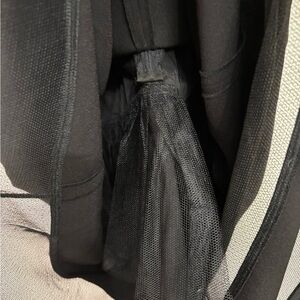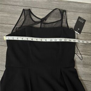 Aidan Mattox Black Mesh Stripe Midi Dress Fit & Flare Illusion Neckline Cocktail