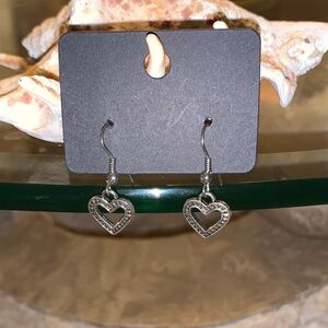 Elegant silver heart dangle earrings perfect for any occasion. Add a touch of charm to your outfit.