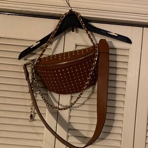 Steve Madden Brown Crossbody Bag with Gold Studs