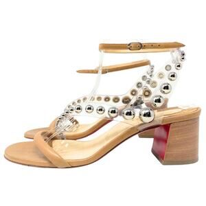 NEW Christian Louboutin Shoes Heels Sandals Corinne 55 Beige Stud Nude 39.5