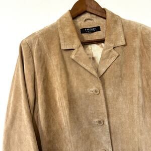 Vintage Suede Leather Blazer Jacket Tan Parisian Signature Large Relaxed 90s