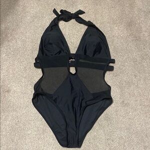 Dive into style with this elegant black halter one-piece swimsuit. Perfect for a chic beach look. new never worn.