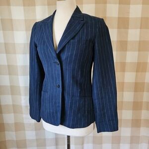 Hennes Navy Blue Pinstripe Tailored Linen Blazer Jacket Preppy Nautical Size 6