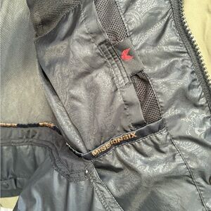 • Details: Sleeve patch logo, multiple secure pockets, wrist gaiters, weather-resistant design