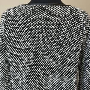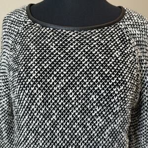 Zara Knit Sweater Boat Neck Long Sleeve Black White Wool Blend Size M Casual