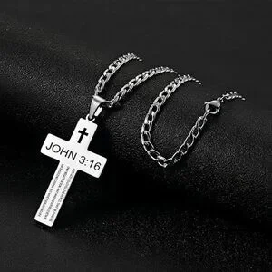Stainless Steel Cross Necklace Engraved John 3:16 Classic Faith Jewelry Gift