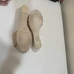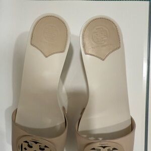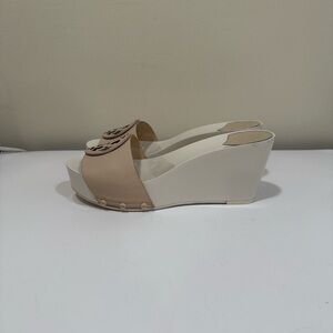 Tory Burch Cream and White 3-1/4” Wedge Sandals (sz 8.5)