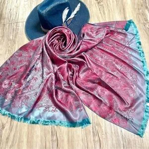 โจ Enchanting SILK Pink and Teal SCARF/body wrap w Gypsy southwestern vibe