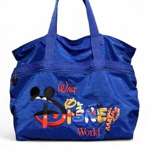 Disney World Vintage Nylon Blue Zip Tote Bag