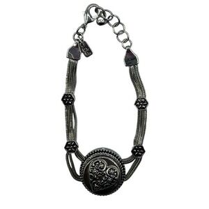 Vintage Silver Tone Decor Charm Bracelet Women Boho Floral Medallion Antique