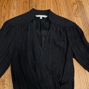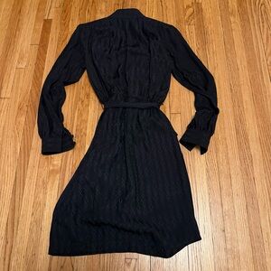 Chic black dress with long sleeves. Features a flattering tie waist. Perfect for elegant occasions.