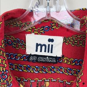RARE Mii au cinema Red Chain Pattern print long sleeve silk blouse Shirt small