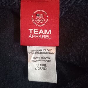 USA Olympic Committee Woman's Full Zip navy blue , fleece lined jacket. 3 front pockets and 2 inside pockets. Thumb Holes. Size L . great condition.
