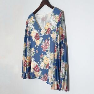 Laura Felt Floral Print Pleated Bell Sleeve Blouse Top. Excellent pre-owned condition!
