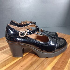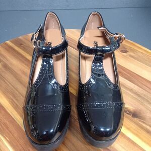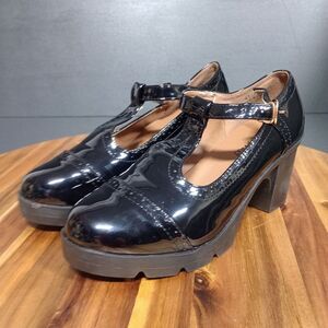 DADAWEN Womens Leather Classic T-Strap Platform Chunky Mary Jane Sz 9.5 Goth