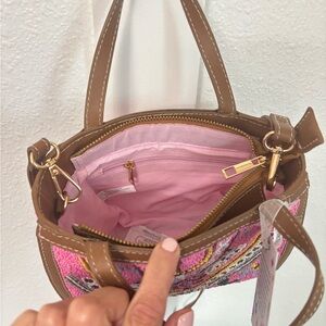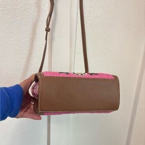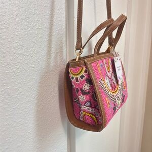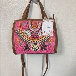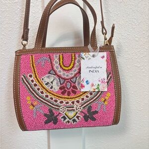 NWT Anthropologie Crossbody Bag Pink and Brown with Boho Embroidery