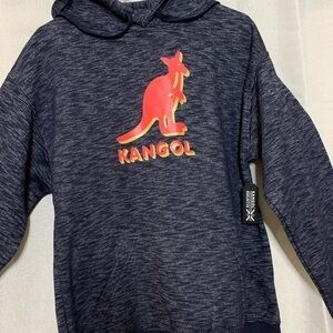 Kangol Logo Hoodie Mens Sweatshirt Heather Navy Blue sz L.