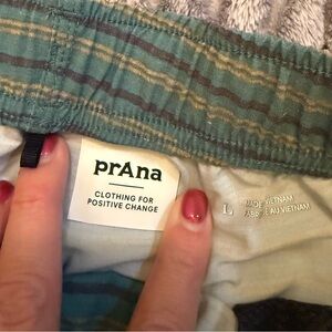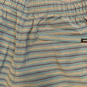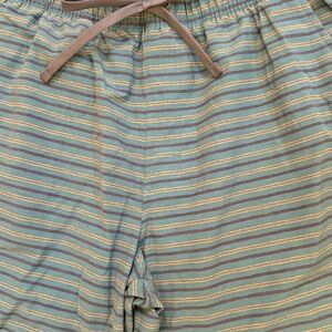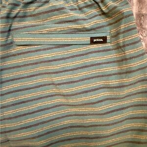 Stylish Prana shorts with teal and gray stripes. Ideal for everyday comfort.