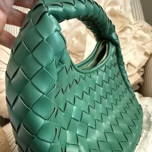Anthropologie Green Inez Woven Faux Leather Bag
