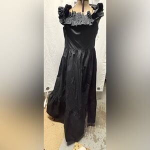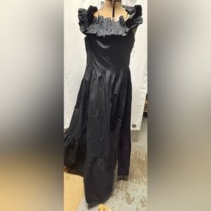 Stylish black maxi skirt with ruffle accents. Ideal for formal events.