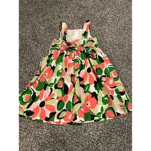 Cc15 Gymboree Girls Dress Size 3 Floral Print Coral Green Bow Back Cotton