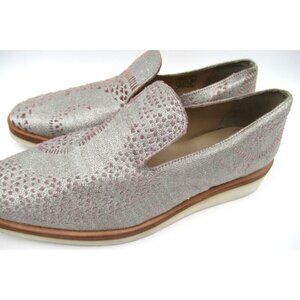 Free People Metallic Silver Pink Snake Print Slip On Loafers Woman's Size EU 41