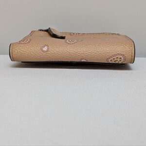 Coach Trifold Wallet Western Heart Print Small Beige Valentine Snap Closure