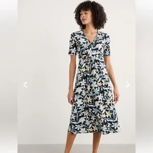 Seasalt Cornwall Women Short Sleeve Dress Carwynnen Midi Dress Painted Daffodil US 6 UK 10