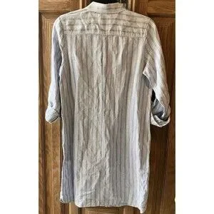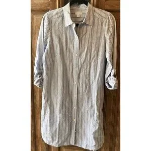 J Jill Love Linen Shirt Dress Women's Size Small Blue Striped Pockets EUC