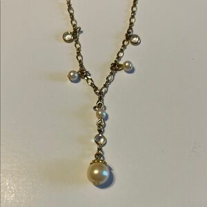 This stunning necklace features a gold tone chain with elegant faux pearl accents, perfect for any occasion.