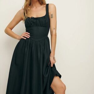 Easy breezy. Shop the Balia Linen Dress from Reformation, a sleeveless maxi dress with a drop waist, scoop neckline, and front tie.