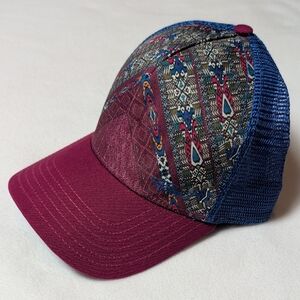 Stylish women's cap featuring a vibrant multicolor Western style pattern. Mesh back for breathability with snapback sizing closure. Ideal for outdoor adventures with a splash of sun-blocking happiness! Hat has no stains or discoloration. Excellent condition.