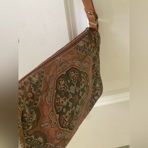 L.L. Bean Tapestry Crossbody Shoulder Purse Vintage Leather Bag Zipper USA Made