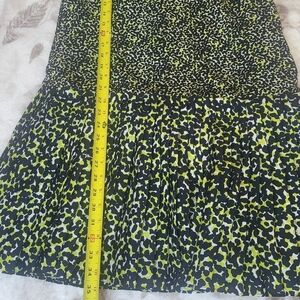 Stylish sleeveless dress with a black and green pattern. Features a zip-up back for easy wear.Size 8, this dress is pre owned but it's in good condition.