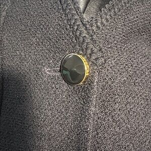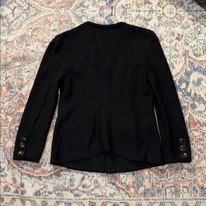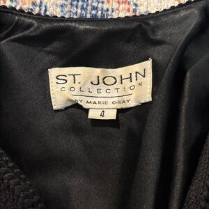 St. John Collection by Marie Gray Black Knit Jacket size 4. The shoulder pads have been cut out, but this doesn’t have any cosmetic effect other than the intended. Otherwise in very good used condition and from a smoke-free home.