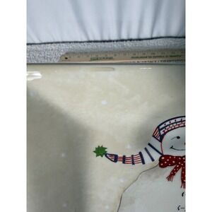 Keywords: Christmas plate, Holiday decor, Winter theme, Snowman dish, Festive serving, Decorative accent, Kitchenware, Tabletop, Seasonal item, Charming design, Party accessory, Collectible plate
