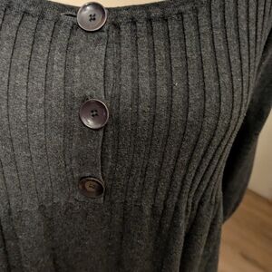 Elegant black-gray top with stylish button detailing. Perfect for any occasion. Bunched elastic sleeves.