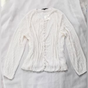 NWOT! Boston Proper Bright White Cardigan Pearl Embellished Women's Top Medium