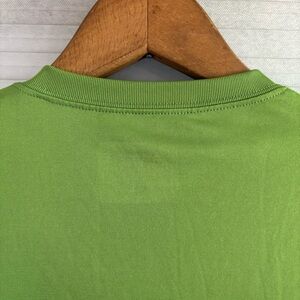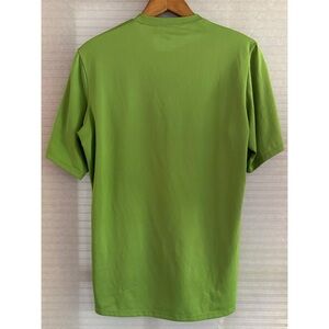 Patagonia men's performance capilene base layer short sleeve shirt in the color green chartreuse in a size medium. It features a crew neck, logo on the bottom hem, & a cool lightweight feel. As seen in the photos, there is a missing thread near the neckline. Other than that, its in great preowned condition.
