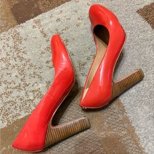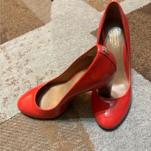 Elegant Orange color dress Shoes by Coach. Perfect for adding flair to any outfit. Preowned but in mint condition with wear and tear on the back as shown in photos. See heel length in photos. Size 6B. No original shoe box, no coach cloth. Price right to sell fast.