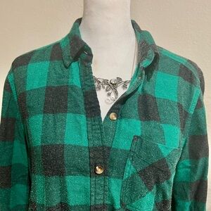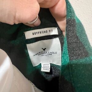 American Eagle Green Buffalo Plaid Flannel Shirt - Boyfriend Fit - Small